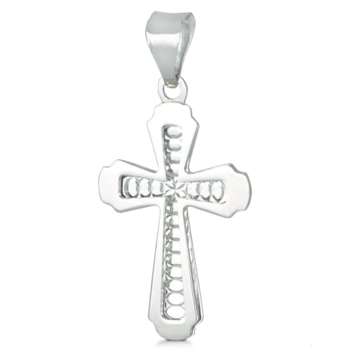 Ciondolo Croce Oro Bianco GL101399 Ciondolo unisex in oro bianco 750/00 (18 kt). Ciondolo a forma di croce, dimensioni 2.10 x 1.20 cm. Il peso del ciondolo è di 0.90 grammi. Referenza: GL101399