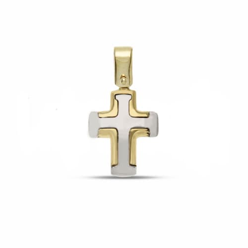 Ciondolo Croce Uomo Oro Bianco Giallo GL101890 Ciondolo da uomo a forma di croce in oro bianco e giallo 750 (18 KT). Le dimensioni del ciondolo sono di 2,00 x 1,10 cm. Il peso del ciondolo è di 1,20 grammi. Referenza: GL101890