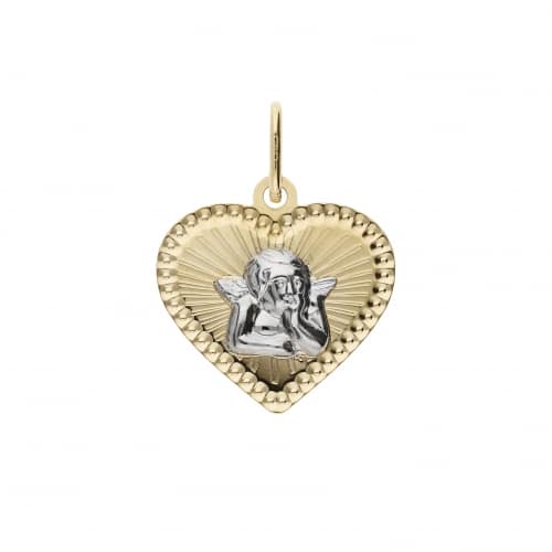 Ciondolo Cuore Angelo Oro Bianco Giallo GL101578 Ciondolo unisex in oro bianco e giallo 750/00 (18 kt). Ciondolo a forma di cuore con angelo a rilievo, dimensioni 1.60 x 1.50 cm. Il peso del ciondolo è di 1.00 grammi. Referenza: GL101578