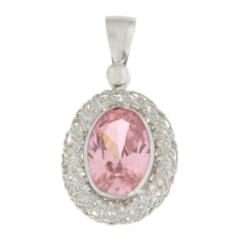 Ciondolo Donna Oro Bianco GL101659 Ciondolo da donna in oro bianco 750/00 (18 kt). Ciondolo di forma ovale con pietra zircone di colore rosa e contorno in oro con lavorazione traforata, dimensioni 2.90 x 1.60 cm. Il peso del ciondolo è di 2.90 grammi. Referenza: GL101659
