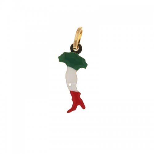 Ciondolo unisex in oro giallo con smalto 750/00 (18kt) a forma di Italia, lavorazione lucida, dimensioni 1,00 x 1,80 cm, peso 1,10 grammi. Referenza: 803321705648 Non è quello che cercavi? Scopri tutti i ciondoli in oro o i nostri gioielli in oro