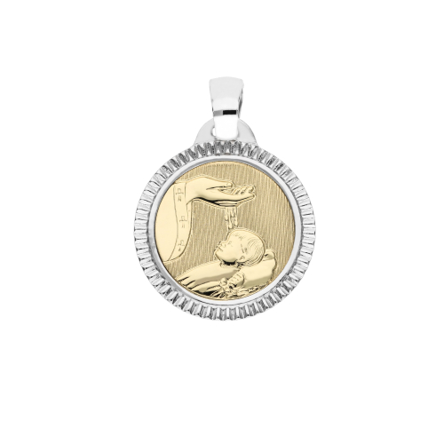 Ciondolo Medaglia Battesimo Oro Giallo Bianco GL100770