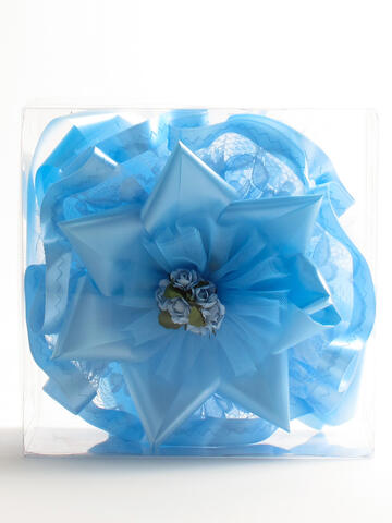 Coccarda/fiocco nascita femmina/maschio, con bouquet di rose al centro.Disponibile in taglia unica nei colori rosa (femmina) e azzurro (maschio).