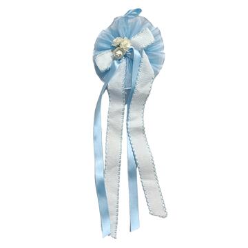 Coccarda/fiocco nascita per femmina o maschio, con bouquet di rose al centro e nastrini di materiali diversi.Disponibile in taglia unica nei colori rosa e azzurro.Diametro 14 cmMade in Italy