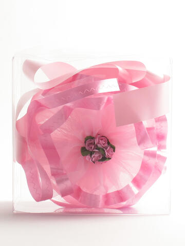 Coccarda/fiocco nascita femmina/maschio, con bouquet di rose al centro.Disponibile in taglia unica nei colori rosa (femmina) e azzurro (maschio).