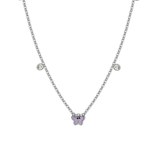 Collana Bimba Luca Barra JC145 Collana Bambina in acciaio con farfalle con smalto viola e cristalli bianchi. Lunghezza: 38 + 3 cm. Misura farfalle: 7 x 5 mm. Spessore catena: 4 mm. Diametro cristalli: 4 mm. Aggiungi un tocco di magia al guardaroba della tua piccola principessa con la nostra Collana Bambina in Acciaio con Farfalle, Smalto Viola e Cristalli Bianchi. Questo incantevole gioiello è una celebrazione della leggerezza, della gioia e dell’innocenza delle farfalle, perfetto per piccole sognatrici. Referenza: JC145 Articolo spedito con garanzia ed astuccio originale Luca Barra