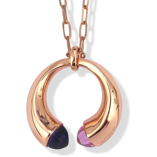 Collana Donna Boccadamo Caleida KGR019RP Collana da donna Boccadamo della collezione Caleida. Collana in bronzo PVD oro rosa con pendente contrariè definito da cristalli piramidali color ametista e morganite, lunghezza 80 cm. Referenza: KGR019RP Articolo spedito con garanzia ed astuccio Boccadamo