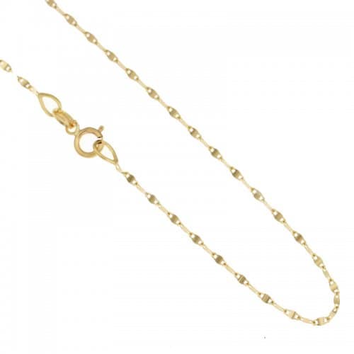 Collana girocollo da donna in oro giallo 18 kt (750/00), catenina maglia marina schiacciata, lunghezza 45 cm, peso 1,10 grammi. Referenza: 803321705221 La collana sarà spedita nella confezione della nostra gioielleria, con certificato di autenticità.