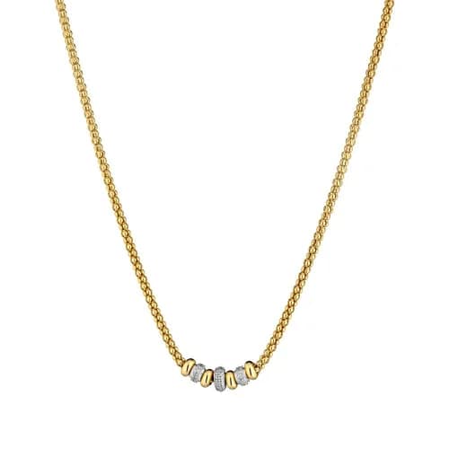 Collana Donna Marcello Pane Twist JECL 002 Collana da donna Marcello Pane della collezione Twist. Collana in argento 925 PVD oro con zirconi, lunghezza regolabile da 42 a 47 cm. Chiusura con moschettone. Referenza: JECL 002 La Collana Dischi Lux – Twist unisce riflessi dorati e tocchi di luce chiara in un equilibrio elegante, posandosi delicatamente sul collo per illuminare ogni look. Articolo spedito con astuccio e garanzia Marcello Pane
