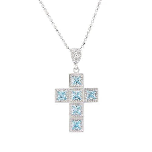 Collana Donna Michele Affidato Trinity CL-TY-000582 Collana da donna Michele Affidato della collezion Trinity. Collana con croce in argento 925 con pietre zirconi di colore azzurro. Lunghezza collana regolabile da 42 a 45 cm. Referenza: CL-TY-000582 Catenina con croce in argento 925, realizzata con la tecnica della fusione a cera persa e rifinita artigianalmente. Una creazione composta da sei castoni finemente lavorati e circondati da una greca a rilievo a forma di ondina. In ogni elemento sono state incastonate pietre di Cubic Zirconia, taglio princess. Articolo spedito con garanzia e astuccio Michele Affidato