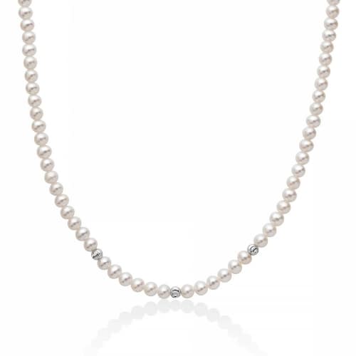 Collana Donna Miluna Perle PCL6317 Collana da donna Miluna della collezione Le Perle Boule e Fantasia. Collana con perle coltivate diametro 4.5/5 mm e 1 perla 7/7.5 mm; 3 sfere boule in oro bianco 750/00 (18 kt). La chiusura è in oro bianco 750/00 (18 kt). La lunghezza della collana è di 45 cm. Referenza: PCL6317 Articolo spedito con garanzia ufficiale ed astuccio originale Miluna Miluna Gioiello Sicuro Su tutti i gioielli Miluna è offerta un’assicurazione gratuita contro rapina e scippo, copertura valida per 12 mesi dalla data d’acquisto. L’azienda Miluna ha radici profonde nella tradizione artigianale e nella passione per i gioielli di alta qualità. Miluna si distingue per la sua attenzione ai dettagli e l’impegno per la creazione di gioielli che rappresentano l’essenza stessa dell’eleganza e del lusso. Il successo travolgente di Miluna si è manifestato fin dal 1997, quando è diventato partner ufficiale di Miss Italia, realizzando le splendide corone che impreziosiscono le vincitrici del concorso, decorandole con luccicanti diamanti, prelibate gemme preziose e affascinanti perle. Eleva il tuo stile con un tocco di classe, perché i gioielli Miluna sono perfetti per ogni occasione. Questi gioielli si adattano alle esigenze delle donne più raffinate in materia di moda, ma sono altrettanto adatti a coloro che preferiscono uno stile più informale o sportivo.
