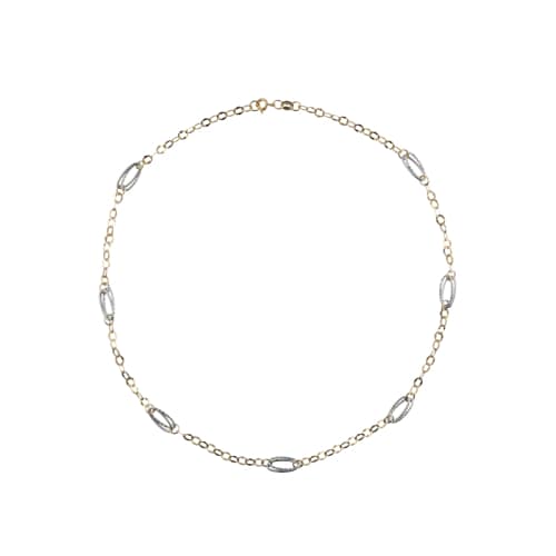 Collana Donna Oro Bianco Giallo GL102010 Collana da donna in oro bianco e giallo 750 (18 kt). Collana a catena maglia fantasia. La lunghezza della collana è di 45 cm, chiusura con moschettone. Il peso della collana è di 4,20 grammi. Referenza: GL102010 Questa splendida collana in oro bianco e giallo 18 KT, con maglia fantasia, è l’emblema dell’eleganza contemporanea. Un intreccio di luci e riflessi che dona carattere a ogni outfit, perfetta da indossare da sola o da abbinare ad altri gioielli per un effetto unico. Ideale per chi ama distinguersi con classe e raffinatezza.