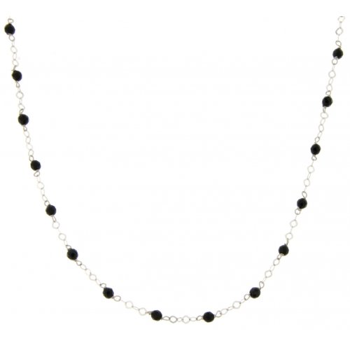 Collana Donna Oro Bianco GL100293 Collana da donna in oro bianco 750/00 (18 kt). La maglia della collana è a catena con pietre zirconi neri. La lunghezza della collana è di 45 cm. La chiusura della collana è con moschettone. Il peso della collana è di 2,90 grammi. Referenza: GL100293