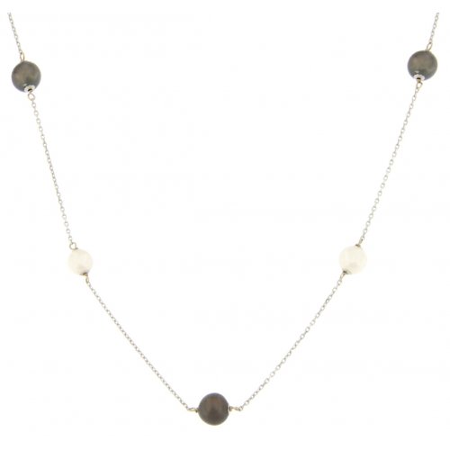 Collana Donna Oro Bianco GL100294 Collana da donna in oro bianco 750/00 (18 kt). La maglia della collana è a catena con perle bianche e grigie. La lunghezza della collana è di 45 cm. La chiusura della collana è con moschettone. Il peso della collana è di 4,90 grammi. Referenza: GL100294