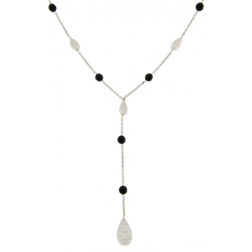 Collana Donna Oro Bianco GL100304 Collana da donna in oro bianco 750/00 (18 kt). La maglia della collana è a catena con pietre zirconi neri con pendente di lunghezza 6,00 cm. La lunghezza della collana è di 45 cm. La chiusura della collana è con moschettone. Il peso della collana è di 6,20 grammi. Referenza: GL100304