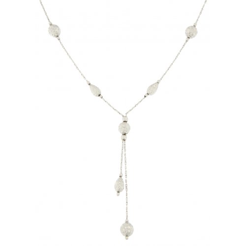 Collana Donna Oro Bianco GL100305 Collana da donna in oro bianco 750/00 (18 kt). La maglia della collana è a catena con pendenti di lunghezza 3,00 e 5,00 cm. La lunghezza della collana è di 45 cm. La chiusura della collana è con moschettone. Il peso della collana è di 5,90 grammi. Referenza: GL100305