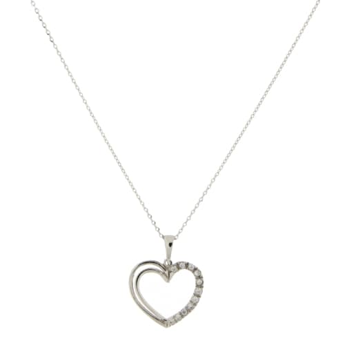 Collana Donna Oro Bianco GL101253 Collana da donna in oro bianco 750/00 (18 kt). Collana a catena modello rolo’ con pendente a forma di cuore con pietre zirconi. La lunghezza della collana è di 45 cm. Il peso della collana è di 2.10 grammi. Referenza: GL101253