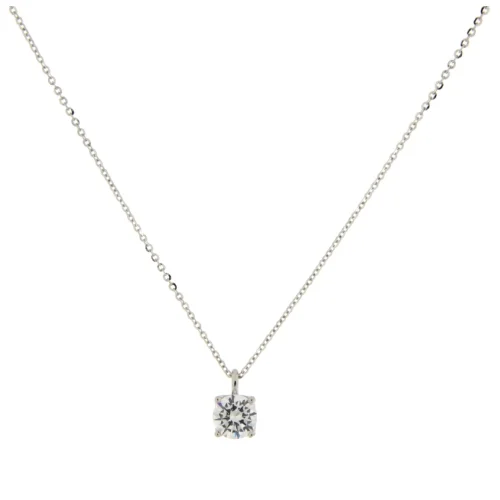 Collana Donna Oro Bianco GL101273 Collana da donna in oro bianco 750/00 (18 kt). Collana a catena modello rolo’ con pendente a forma di punto luce con pietra zircone. La lunghezza della collana è di 45 cm. Il peso della collana è di 2.00 grammi. Referenza: GL101273
