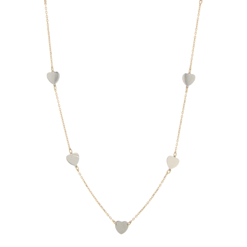 Collana Donna Oro Giallo Bianco GL100634 Collana da donna in oro giallo e bianco 750/00 (18 kt). La maglia della collana è a catena alternata ad elementi a forma di cuore. La lunghezza della collana è di 45 cm. La chiusura della collana è con moschettone. Il peso della collana è di 3.00 grammi. Referenza: GL100634