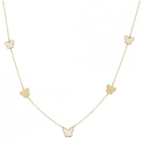 Collana Donna Oro Giallo GL100300 Collana da donna in oro giallo 750/00 (18 kt). La maglia della collana è a catena modello rolò alternata a farfalle con madreperla. La lunghezza della collana è di 45 cm. La chiusura della collana è con moschettone. Il peso della collana è di 2,60 grammi. Referenza: GL100300