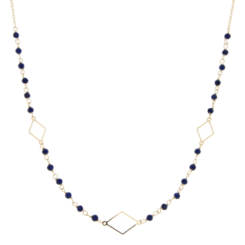 Collana Donna Oro Giallo GL100701 Collana da donna in oro giallo 750/00 (18 kt). La maglia della collana è a catena alternata a pietre zirconi di colore blu di dimensione 0.20 cm. La lunghezza della collana è di 45 cm. La chiusura della collana è con moschettone. Il peso della collana è di 2.00 grammi. Referenza: GL100701