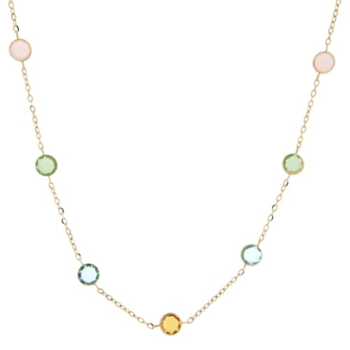 Collana Donna Oro Giallo GL100705 Collana da donna in oro giallo 750/00 (18 kt). La maglia della collana è a catena alternata a pietre zirconi multicolore. La lunghezza della collana è di 45 cm. La chiusura della collana è con moschettone. Il peso della collana è di 2.40 grammi. Referenza: GL100705