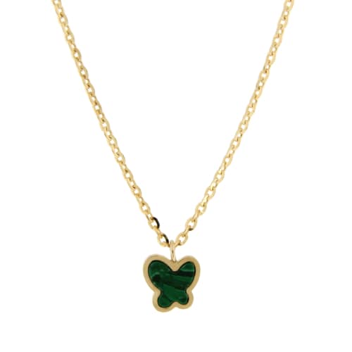 Collana Donna Oro Giallo GL102027 Collana da donna in oro giallo 750 (18 kt). Collana a catena con pendente a forma di farfalla con malachite verde. La lunghezza della collana è regolabile da 40 a 45 cm, chiusura con moschettone. Il peso della collana è di 3,10 grammi. Referenza: GL102027 Questa collana in oro giallo 18 kt incanta con il suo pendente a forma di farfalla, impreziosito da una malachite verde dal fascino naturale. Un gioiello che racconta una storia di rinascita e leggerezza, perfetto per chi ama distinguersi con stile.