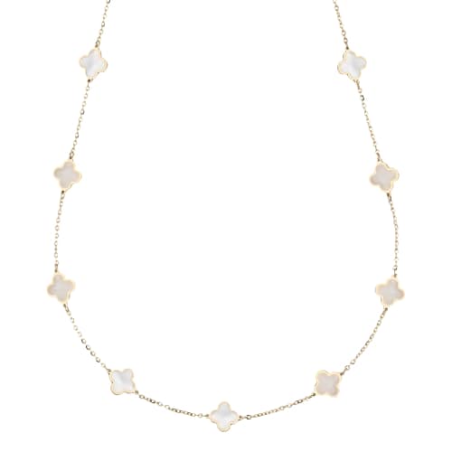 Collana Donna Oro Giallo GL102313 Collana da donna in oro giallo 750 (18 kt). Collana a catena con quadrifogli in madreperla, dimensione quadrifogli 0,70 x 0,70 cm. La lunghezza della collana è regolabile da 42 a 45 cm, chiusura con moschettone. Il peso della collana è di 3,00 grammi. Referenza: GL102313 Un gioiello raffinato che unisce fortuna ed eleganza. Questa collana da donna in oro giallo 18 kt, impreziosita da delicati quadrifogli in madreperla, sprigiona luce e armonia ad ogni movimento. Un dettaglio prezioso che custodisce un tocco di magia e stile senza tempo.