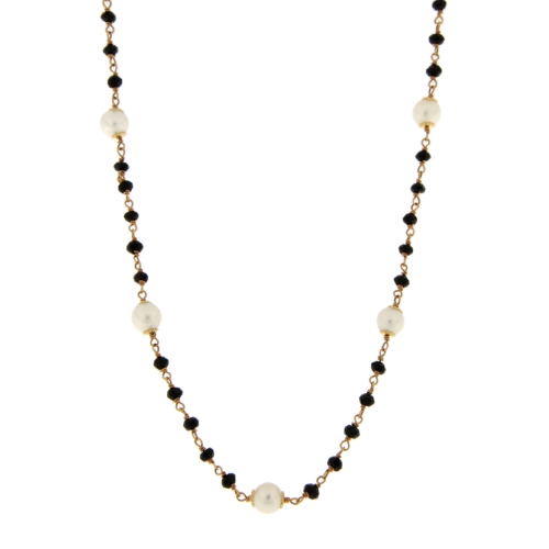 Collana Donna Oro Rosa GL101337 Collana da donna in oro rosa 750/00 (18 kt). Collana con pietre zirconi di colore nero e perle diametro 5 mm. La lunghezza della collana è di 45 cm. Il peso della collana è di 6.30 grammi. Referenza: GL101337