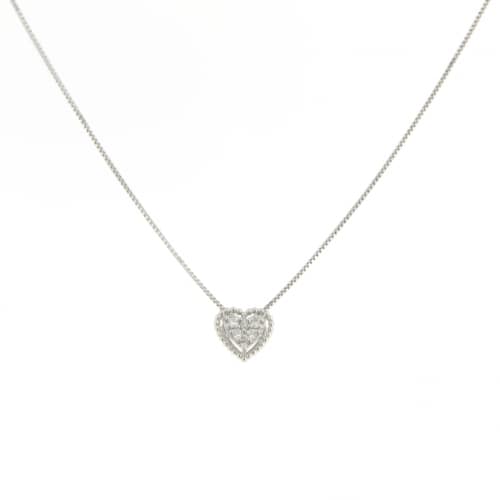 Collana Donna Promesse Gioielli CPCUORE Collana da donna Promesse Gioielli in oro bianco 750/00 (18kt). Collana con pendente a forma di cuore con pavè di diamanti, 0.05 carati totali, colore G/H, purezza VS1. La lunghezza della collana è di 45 cm. La chiusura della collana è con moschettone. Referenza: CPCUORE Articolo spedito con garanzia ufficiale ed astuccio originale Promesse Gioielli
