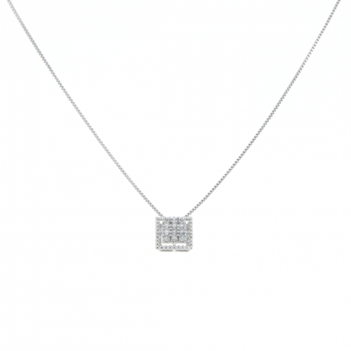 Collana Donna Promesse Gioielli CPQUAD Collana da donna Promesse Gioielli in oro bianco 750/00 (18kt). Collana con pendente di forma quadrata con pavè di diamanti, 0.05 carati totali, colore G/H, purezza VS1. La lunghezza della collana è di 45 cm. La chiusura della collana è con moschettone. Referenza: CPQUAD Articolo spedito con garanzia ufficiale ed astuccio originale Promesse Gioielli
