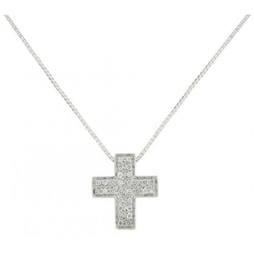 Collana da donna Salvini in oro bianco 18 kt, ciondolo a forma di croce con pavè di diamanti, Carati totali dei diamanti 0,21, Colore H. Referenza: 20001050 Le collane Salvini gioielli donano intramontabile eleganza; le creazioni sono impreziosite dai riflessi e dai colori dei diamanti taglio brillante.