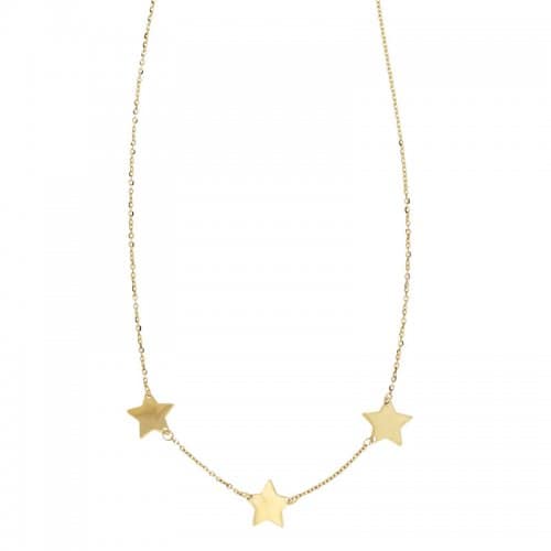 Collana girocollo da donna in oro giallo 18 kt (750/00), catenina maglia rolo ovale diamantata con 3 stelle alternate, peso 3,00 grammi, dimensioni stelle 1,00 x 1,00 cm, lunghezza regolabile 40 o 45 cm. Referenza: 803321737234 La collana sarà spedita nella confezione della nostra gioielleria, con certificato di autenticità.