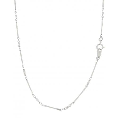 Collana Donna Unoaerre Oro Bianco GL100151 Collana Unoaerre da donna in oro bianco 750/00 (18 kt). La maglia della collana è a catena modello fantasia alternata con lavorazione lucida. La lunghezza della collana è di 45 cm. La larghezza della maglia è di 0,20 cm. Il peso della collana è di 3,20 grammi. Referenza: GL100151