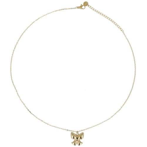 Collana Fiocco Acciaio PVD Oro GLBJKJ6058G Collana da donna realizzata in acciaio PVD oro. Collana con fiocco 1.50 cm con cuore. La lunghezza della collana è regolabile da 40 a 45 cm. Referenza: GLBJKJ6058G