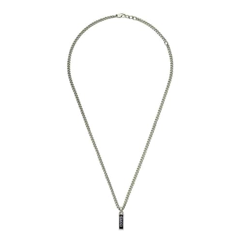 Collana Unisex Gucci YBB678714003 Collana unisex Gucci in argento 925 della collezione Interlocking. Collana con smalto nero e logo Gucci. La lunghezza della collana è regolabile 50 o 55 cm. Referenza: YBB678714003 Un ciondolo smaltato impreziosisce questa collana a catena in argento sterling, completata dal nome della Maison. I dettagli del logo continuano a definire design contemporanei, esaltandone l’anima senza tempo. Articolo spedito con astuccio originale Gucci