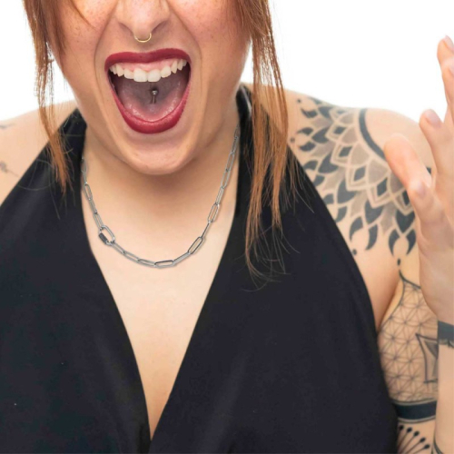 Collana Unisex Marlù 33CO0024 Collana in acciaio con catena a maglia larga diamantata con elemento ovale con cilindro con trama puntinata in black oil opaca. Ad una estremità tag in acciaio inciso con black oil opaco, su un lato il logo Marlù e sull’ altro lato la frase “BORN FROM FIRE”. Chiusura con moschettone su entrambi i lati con anelli con trama puntinata in black oil. Lunghezza totale 60 cm, regolabile da 60 a 50 cm tramite catena removibile a maglia larga diamantata. Materiali: acciaio, black oil. Referenza: 33CO0024 Articolo spedito con astuccio originale Marlù