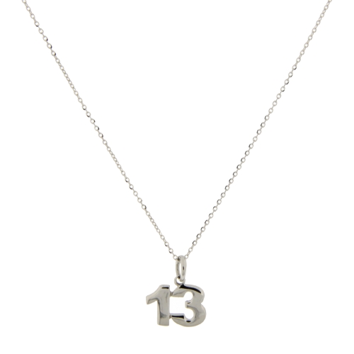 Collana Unisex Oro Bianco GL101256 Collana unisex in oro bianco 750/00 (18 kt). Collana a catena modello rolo’ con pendente a forma di numero 13. La lunghezza della collana è di 45 cm. Il peso della collana è di 2.20 grammi. Referenza: GL101256