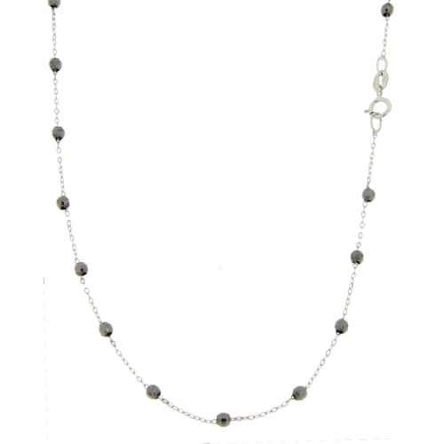 Collana Unisex Oro Bianco Nero GL100423 Collana unisex in oro bianco e nero 750/00 (18 kt). La maglia della collana è a catena con sfere in oro nero. La lunghezza della collana è di 50 cm. La larghezza della maglia è di 0,10 cm. La chiusura della collana è con moschettone. Il peso della collana è di 2,30 grammi. Referenza: GL100423