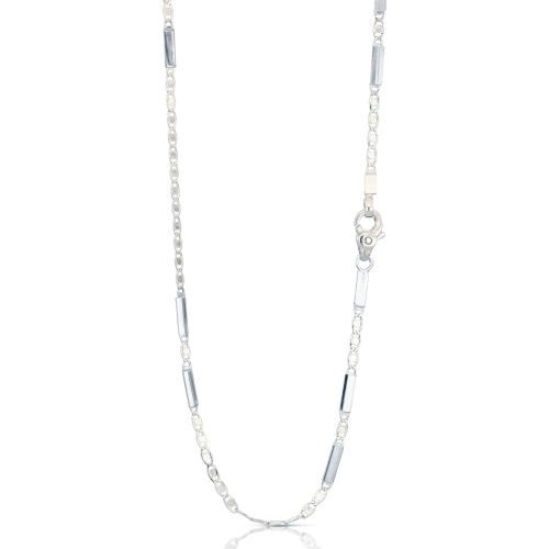 Collana a catena da uomo in oro bianco 18 kt (750/00), maglia con lavorazione lucida e satinata, lunghezza 50 cm, larghezza maglia 0,20 cm, peso 4,70 grammi. Referenza: 803321735556 La collana sarà spedita nella confezione della nostra gioielleria, con certificato di autenticità.