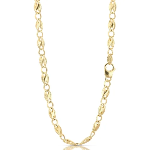 Collana a catena da uomo in oro giallo 18 kt (750/00), maglia con riportini alternati 1+1, lavorazione lucida, lunghezza 50 cm, larghezza maglia 0,30 cm, peso 4,80 grammi. Referenza: 803321729974 La collana sarà spedita nella confezione della nostra gioielleria, con certificato di autenticità.