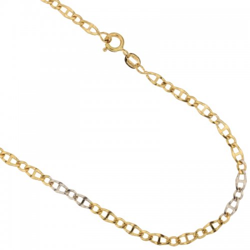 Collana a catena da uomo in oro giallo e bianco 18 kt (750/00), maglia marina piatta alternata, lavorazione lucida, lunghezza 50 cm. Referenza: 803321700306 La collana sarà spedita nella confezione della nostra gioielleria, con certificato di autenticità. Non è quello che cercavi? Scopri tutte le collane da uomo in oro