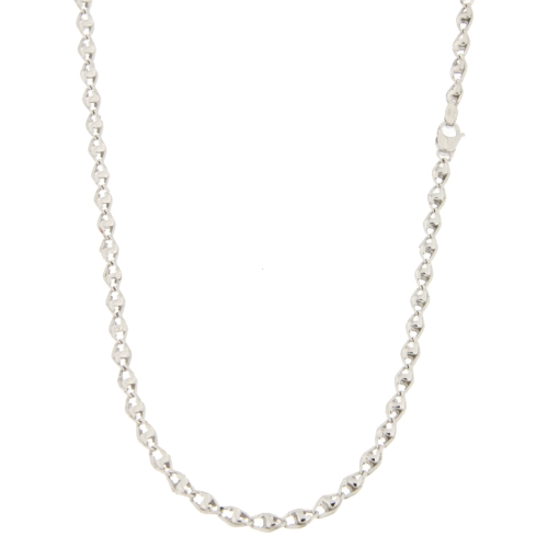 Collana Uomo Oro Bianco GL100410 Collana da uomo in oro bianco 750/00 (18 kt). La maglia della collana è a catena modello con riportini. La lunghezza della collana è di 50 cm. La larghezza della maglia è di 0,30 cm. La chiusura della collana è con moschettone. Il peso della collana è di 5,30 grammi. Referenza: GL100410