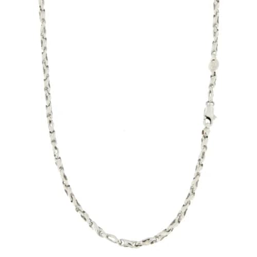 Collana Uomo Oro Bianco GL100416 Collana da uomo in oro bianco 750/00 (18 kt). La maglia della collana è a catena piena modello tubolare lavorazione lucida. La lunghezza della collana è di 50 cm. La larghezza della maglia è di 0,30 cm. La chiusura della collana è con moschettone. Il peso della collana è di 20,20 grammi. Referenza: GL100416