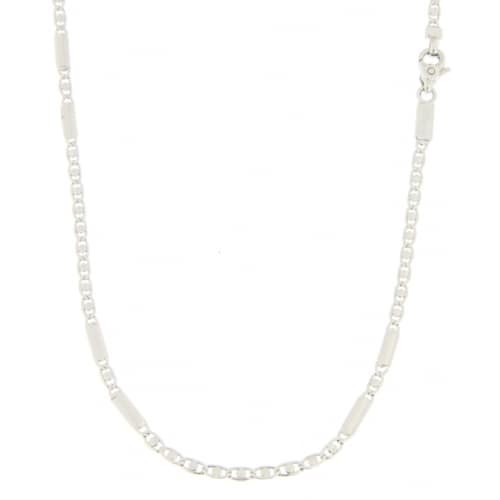 Collana Uomo Oro Bianco GL100425 Collana da uomo in oro bianco 750/00 (18 kt). La maglia della collana è a catena piena modello lingotto alternata. La lunghezza della collana è di 50 cm. La larghezza della maglia è di 0,30 cm. La chiusura della collana è con moschettone. Il peso della collana è di 6,60 grammi. Referenza: GL100425