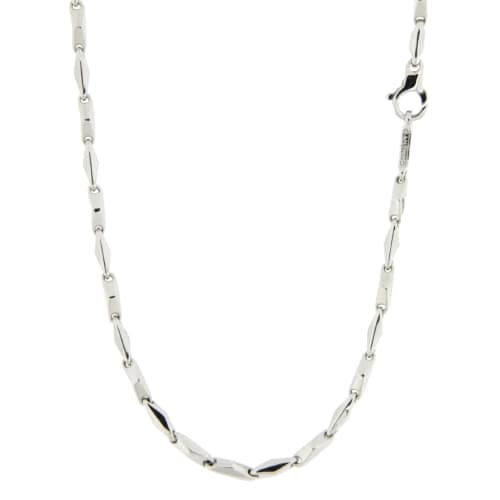 Collana Uomo Oro Bianco GL100532 Collana da uomo in oro bianco 750/00 (18 kt). La maglia della collana è a catena. La lunghezza della collana è di 45 cm. La larghezza della maglia è di 0,30 cm. La chiusura della collana è con moschettone. Il peso della collana è di 9,10 grammi. Referenza: GL100532