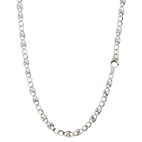 Collana Uomo Oro Bianco GL101077 Collana da uomo in oro bianco 750/00 (18 kt). La maglia della collana è a catena con riportini. La lunghezza della collana è di 50 cm. La larghezza della maglia è di 0.30 cm. La chiusura della collana è con moschettone. Il peso della collana è di 4.10 grammi. Referenza: GL101077