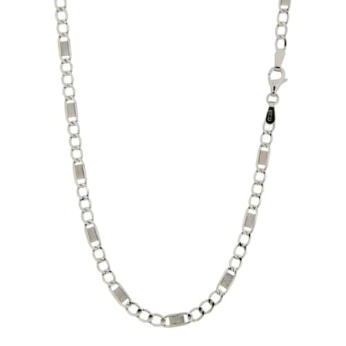 Collana Uomo Oro Bianco GL101091 Collana da uomo in oro bianco 750/00 (18 kt). La maglia della collana è a catena. La lunghezza della collana è di 50 cm. La larghezza della maglia è di 0.30 cm. La chiusura della collana è con moschettone. Il peso della collana è di 4.70 grammi. Referenza: GL101091