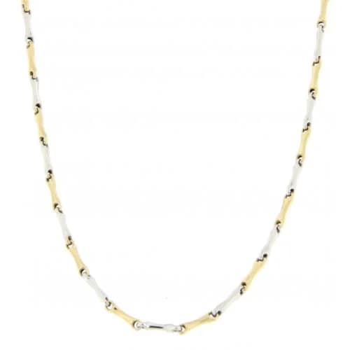 Collana Uomo Oro Giallo Bianco GL100357 Collana da uomo in oro giallo e bianco 750/00 (18 kt). La maglia della collana è a catena modello tubolare con lavorazione lucida. La lunghezza della collana è di 50 cm. La larghezza della maglia è di 0,30 cm. La chiusura della collana è con moschettone. Il peso della collana è di 7,50 grammi. Referenza: GL100357
