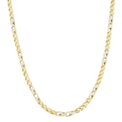 Collana Uomo Oro Giallo Bianco GL100363 Collana da uomo in oro giallo e bianco 750/00 (18 kt). La maglia della collana è a catena modello con riportini con lavorazione lucida. La lunghezza della collana è di 50 cm. La larghezza della maglia è di 0,50 cm. La chiusura della collana è con moschettone. Il peso della collana è di 7,50 grammi. Referenza: GL100363